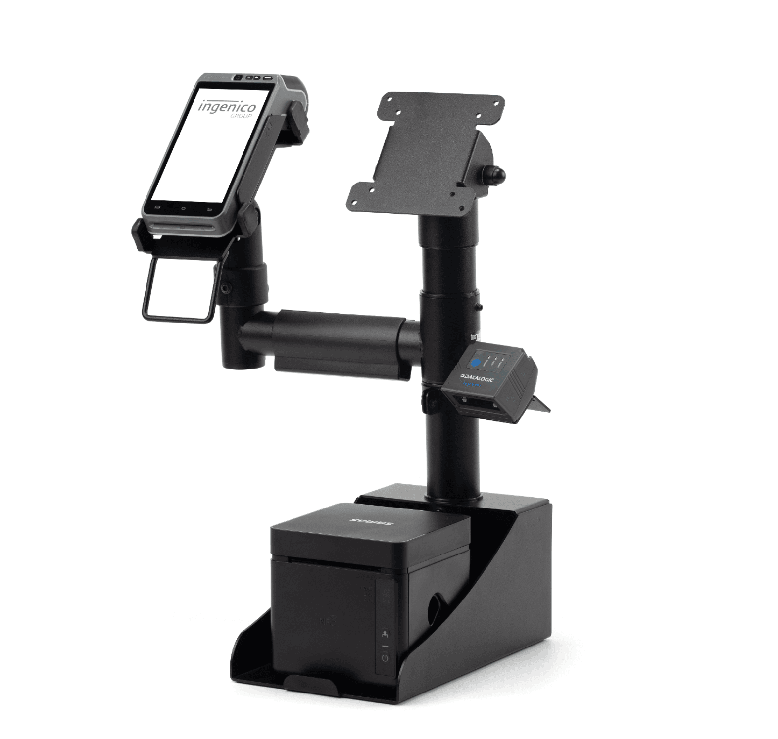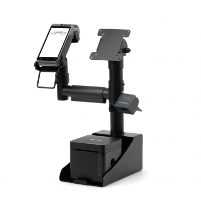 Notă importantă: Pachetul conține sistemul de standuri și suporturi. Echipamentele electronice (monitor, imprimantă, terminal) din imagini sunt cu titlu de prezentare și se achiziționează separat.